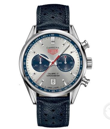 The TAG Heuer Carrera series is a professional chronograph series inspired by motorsports. The recommended series for getting started in the chronograph is Calera. This TAG Heuer Carrera Calibre 17 Chronograph Mens Watch CV5111.FC6335(Replica TAG Heuer Carrera), blue automatic chronograph adopts a 41 mm polished stainless steel case, with a smoky gray dial and a blue sub-dial, with a speed scale on the outer edge of the blue dial. On the dial of the watch, the retro red “Heuer” logo is marked at 12 o’clock, and the red central chronograph hand echoes it. At 3 o’clock and 9 o’clock, there are small seconds and 30-minute counters, and at 6 o’clock, there is a date display window. This watch is equipped with a blue perforated leather strap and equipped with an automatic movement. The watch can provide about 42 hours of power storage and 100 meters of water resistance.http://www.watchcopyline.is/