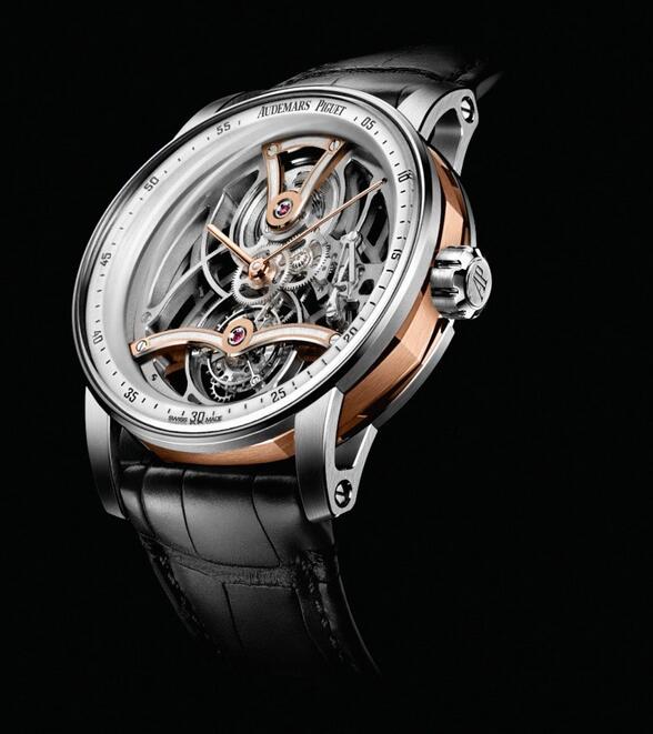 The dark grey dial engraves the “Méga Tapisserie” for a superb look. The black minute bezel ring is separated by a gray minute circle, making each function indication very intuitive. The 12-hour mark is a small second, the 9-hour mark is a 30-minute counter, and the 6-hour clock is a 12-hour counter. Different colors are used to distinguish the sub-dial, so that the layout and design are very user-friendly. The platinum solid-state time scale and the Royal Oak Pointer contrast each other, allowing time to be observed even in darker conditions.Replica Audemars Piguet Watches