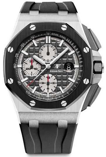 The exquisite branding technique combines a delicate ceramic bezel with a titanium case, designed in a 44 mm size to showcase the atmosphere and uniqueness of the new product. The front side of the ceramic bezel is brushed and the side is polished to give a look of ceramic. Combined with the brushed and polished titanium case, the details are in place. The rectangular chronograph button design has a stronger impact than the original circular design. The octagonal shape is screwed into the crown to engrave the Audemars Piguet "AP" LOGO, giving the new timepiece brand recognition. The waterproof performance of the watch is 100 meters.