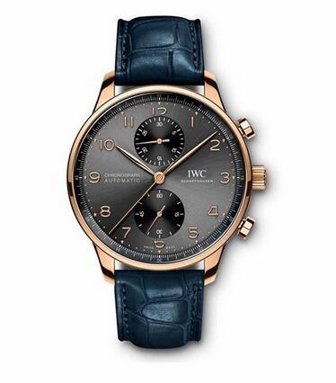 IWC Portugieser Chronograph IW371610(Replica IWC Portugieser). Although this watch is a chronograph, the brand did not design scale rings for speed, mileage, etc., which is extremely simplified. Only a quarter second scale circle on the outer ring of the dial enhances the practicality of the watch. “Symmetry” is the design aesthetics that I think this watch pursues. The small seconds at 6 o’clock and the 30-minute chronograph at 12 o’clock are arranged symmetrically and harmoniously with the slate gray dial, while the 18k red gold case It adds nobleness to the watch. The watch is equipped with the brand’s 69355 in-house movement. The fully wound chain can provide a 46-hour power reserve and is water-resistant to 30 meters.Replica IWC Watches